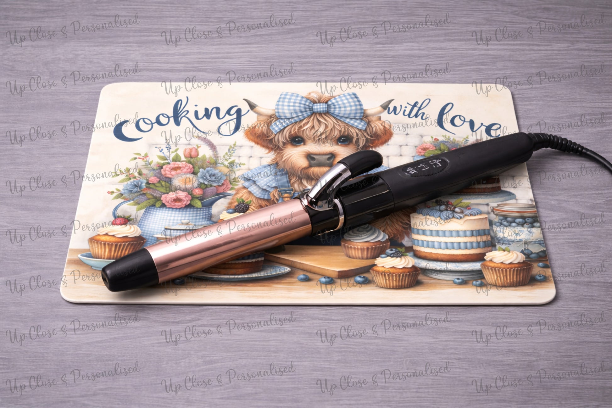Cooking With Love Highland Cow Glass Chopping Board & Heat Protection Mat – 28 x 20cm