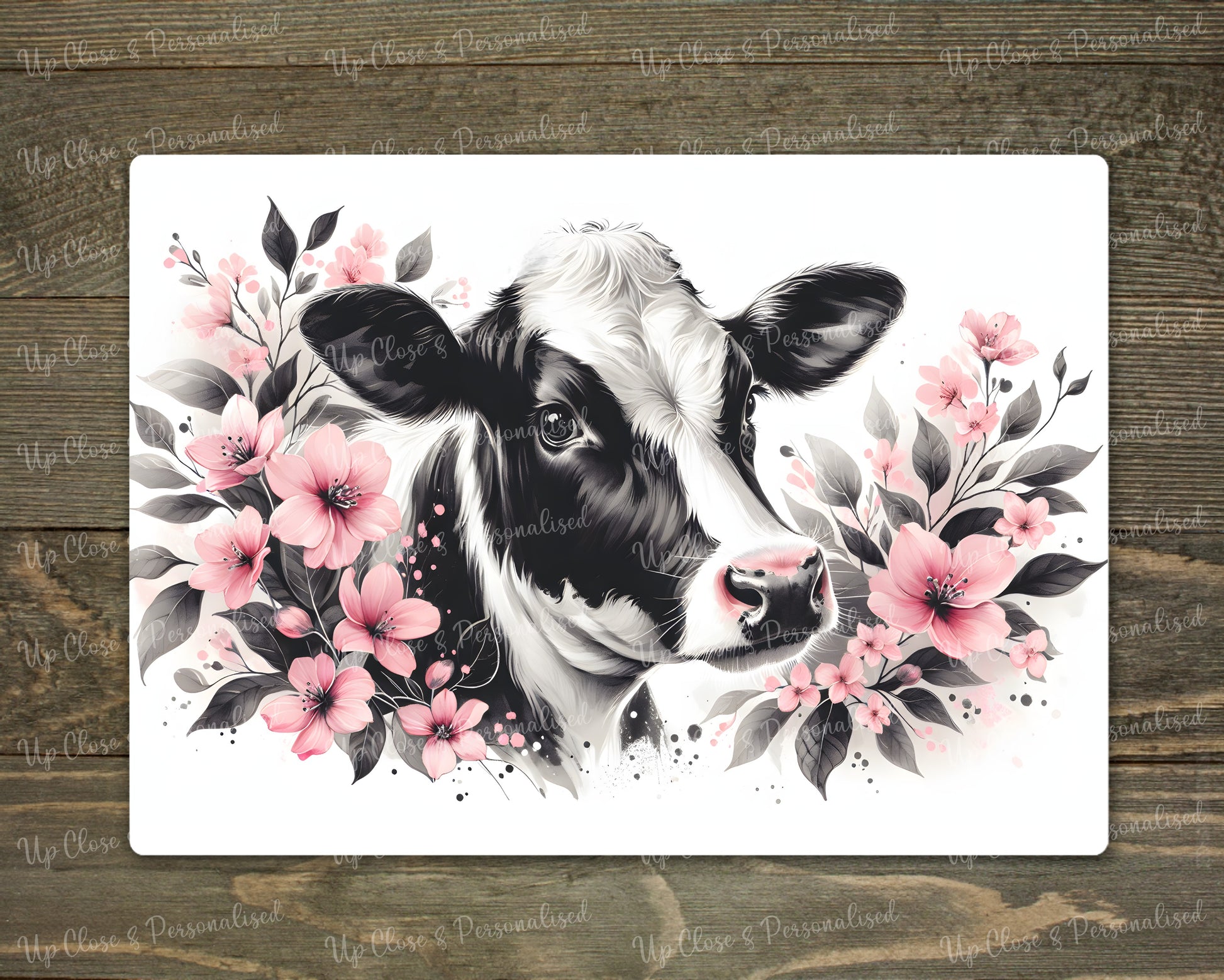 Glass Chopping Board - Black & White Cow (20 cm x 28cm)