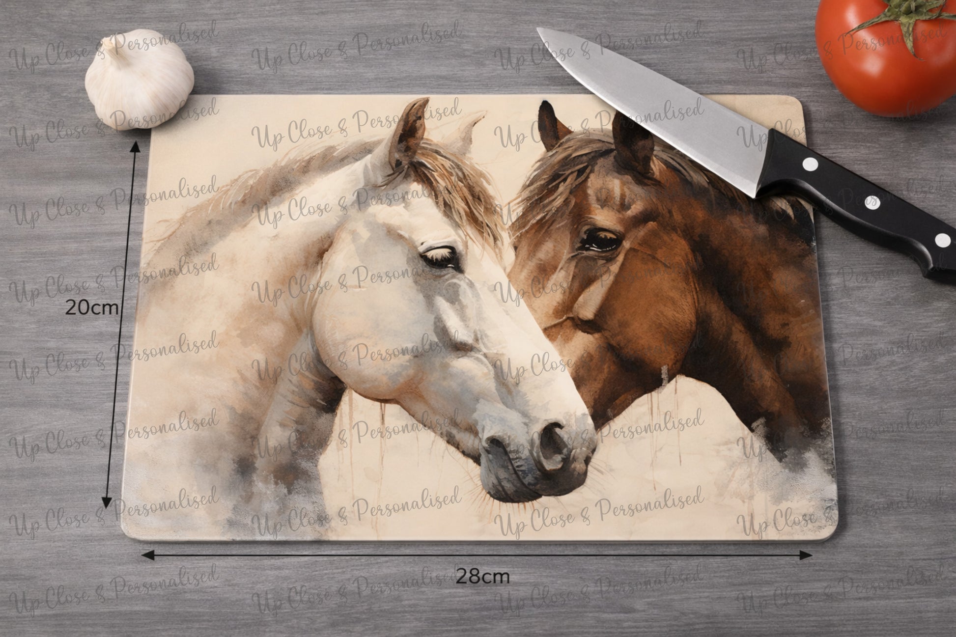 Glass Chopping Board - Horses (20 cm x 28cm)