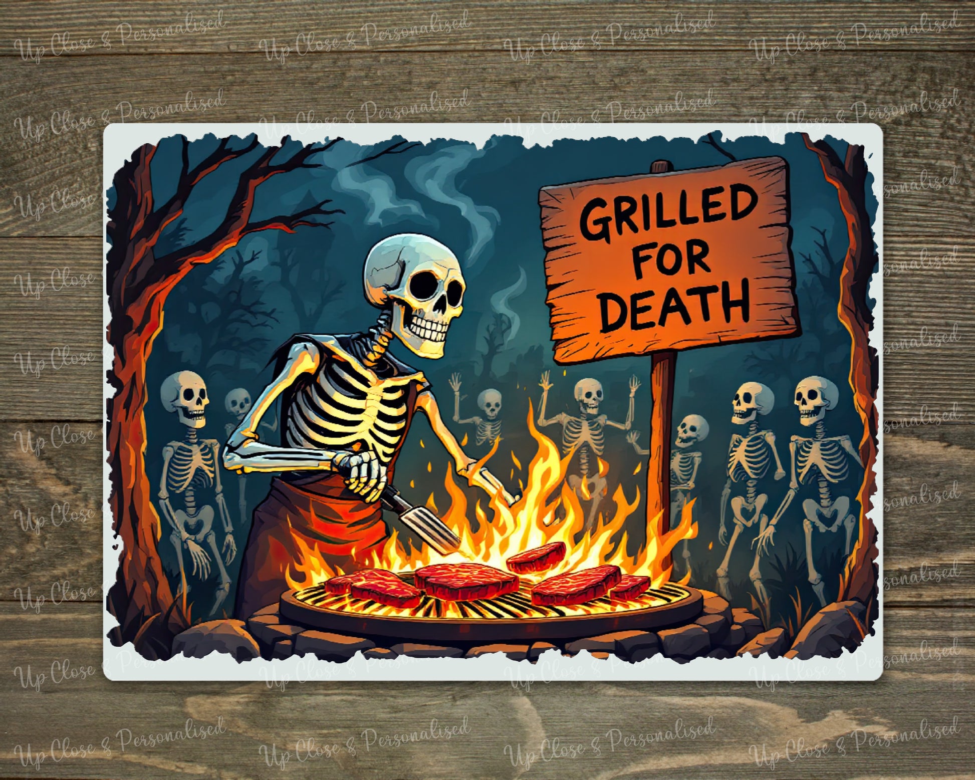 Glass Chopping Board - Skeleton - Grilled for Death (20 cm x 28cm)