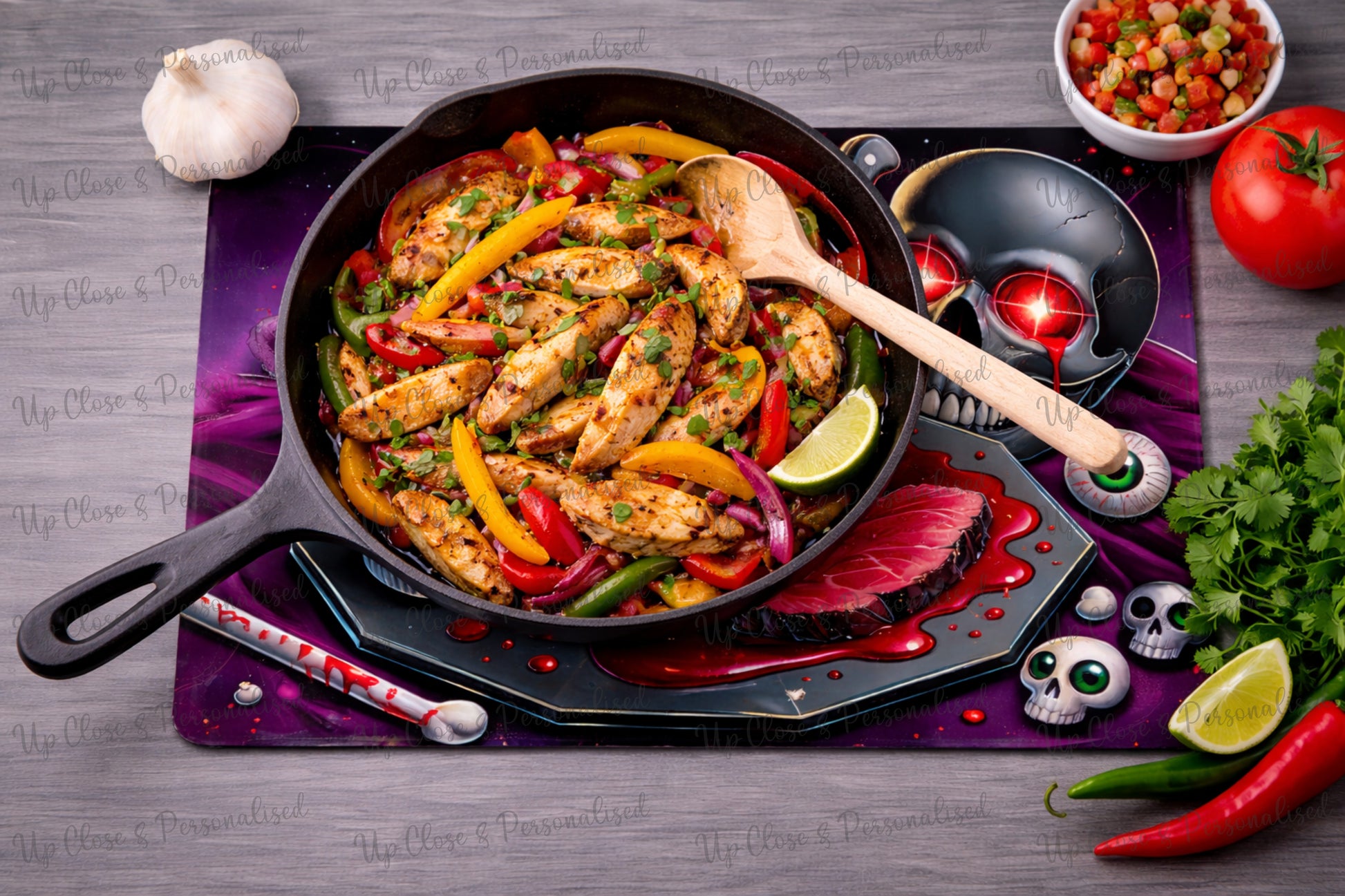Make a bold statement in your kitchen or at your dressing table with this striking horror-themed glass chopping board. Featuring a dramatic skull design with vivid colours and high-gloss detail, this multifunctional board is as practical as it is eye-catching.